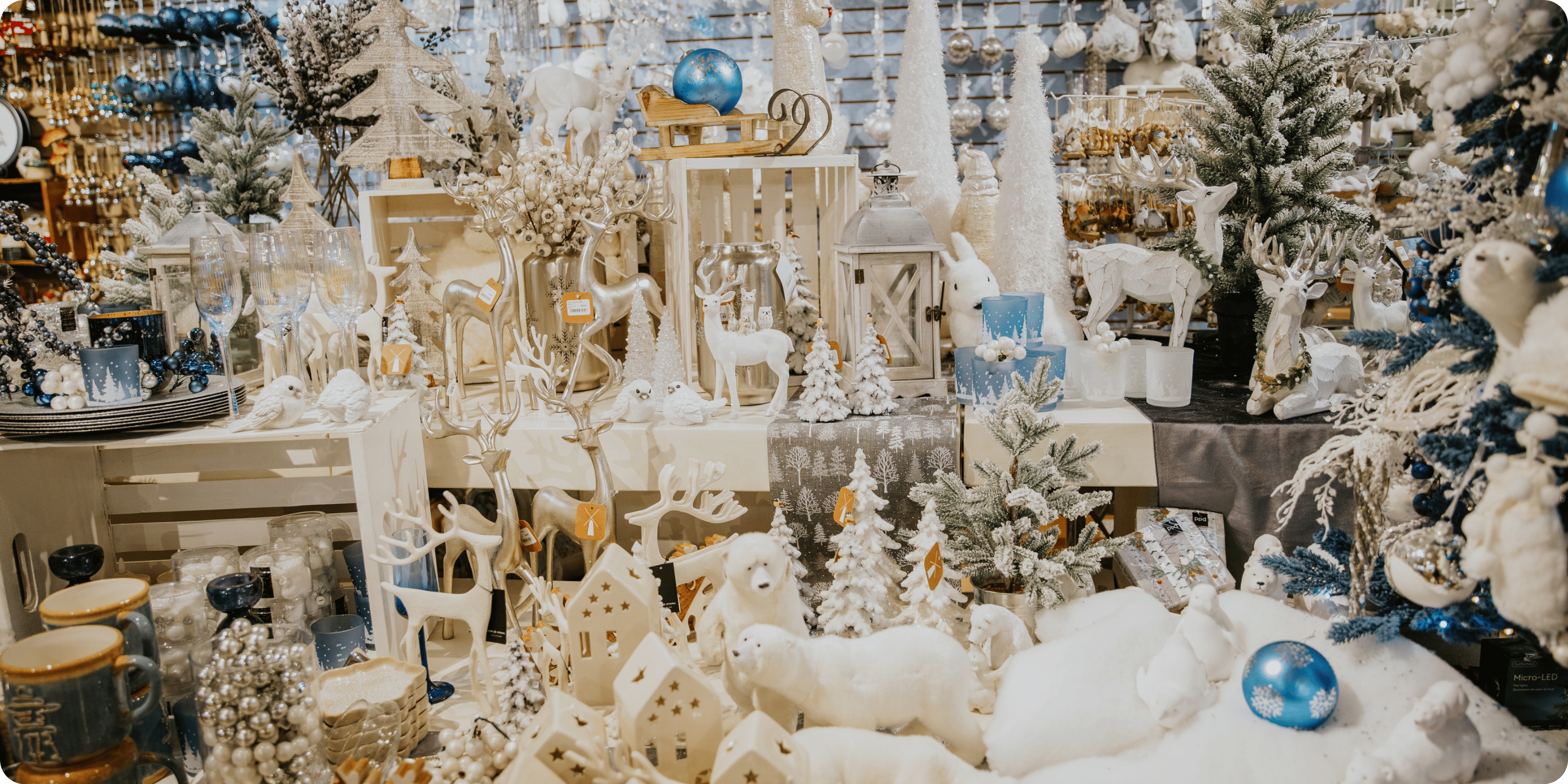 The Winter Wonderland Christmas theme transports you to a snowy winter landscape, with frosty colours and beautiful frozen crystals.